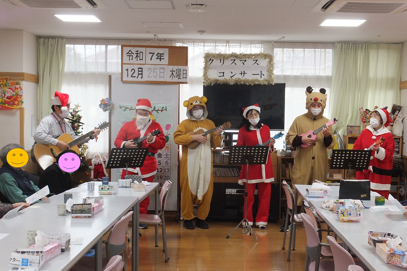 25日クリスマスの日には、事務所のウクレレ同好会の皆様がウクレレ演奏をしてくださいました。